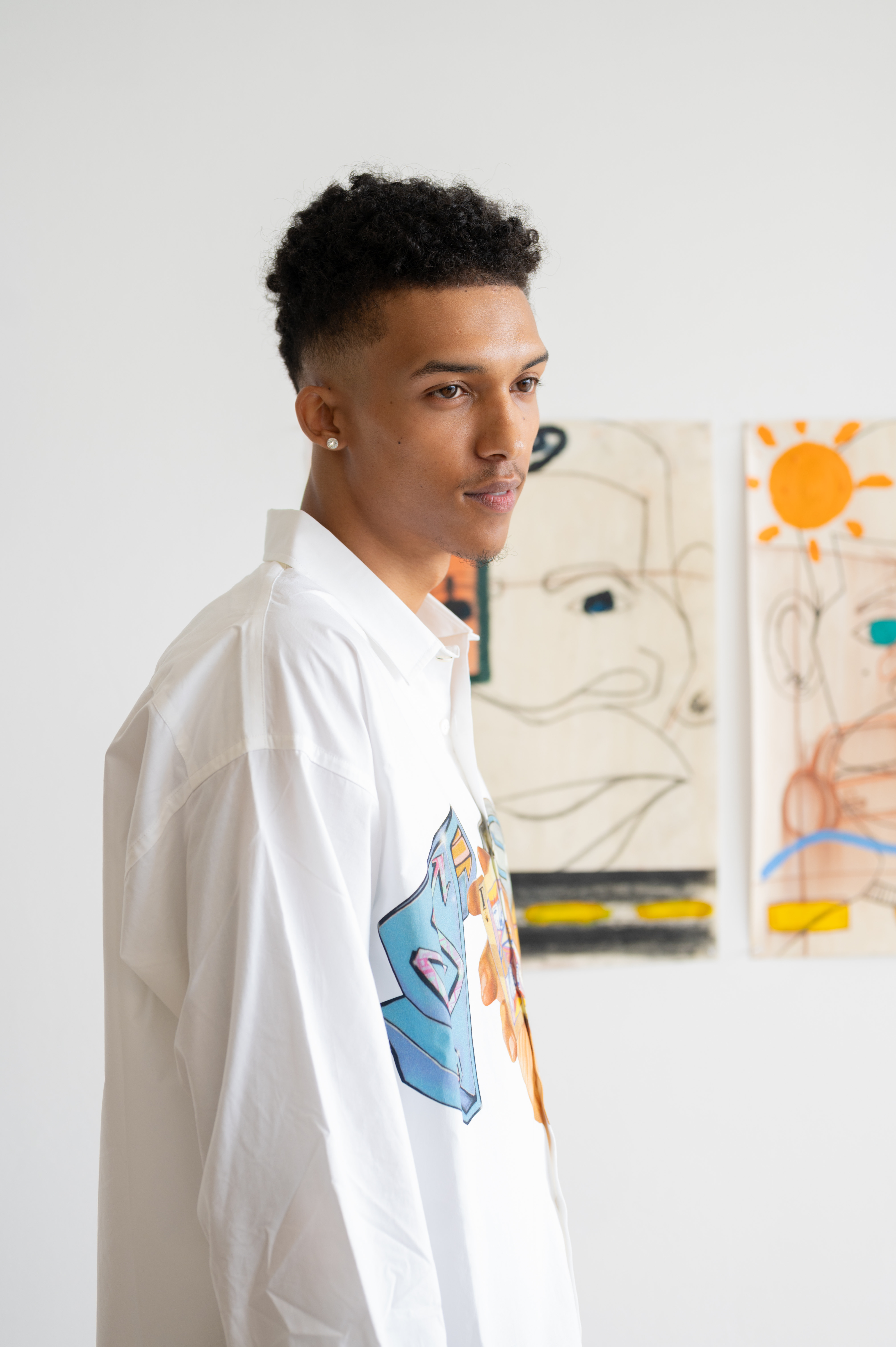His recent works, She Never Left Me and Closed Fist/Closed Heart—both presented at Aqua Art Miami—juxtapose youth and adulthood to examine innocence, resilience, and the lasting imprints of memory. While art remains his primary focus, King also models professionally, channeling visual storytelling across both fields. He previously exhibited in a group show at Band of Vices, and continues to create work that probes human connection and self-evolution.